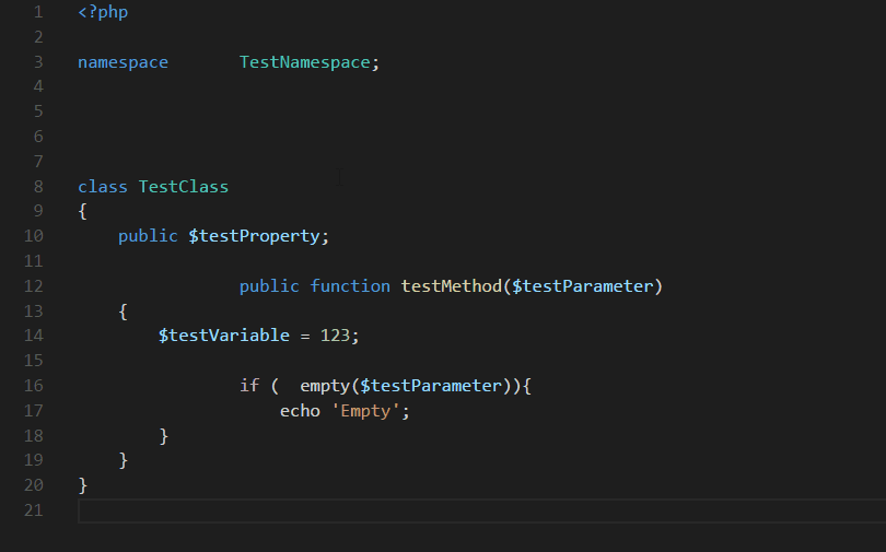 A hover request returns a declaration line (marked with language php) and the summary of the docblock. For Parameters, it will return the @param tag.